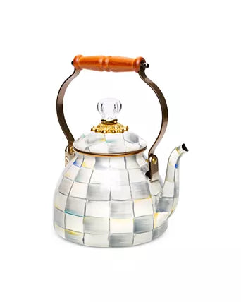 Mackenzie-Childs Sterling Check Enamel Tea Kettle, 2 Qt