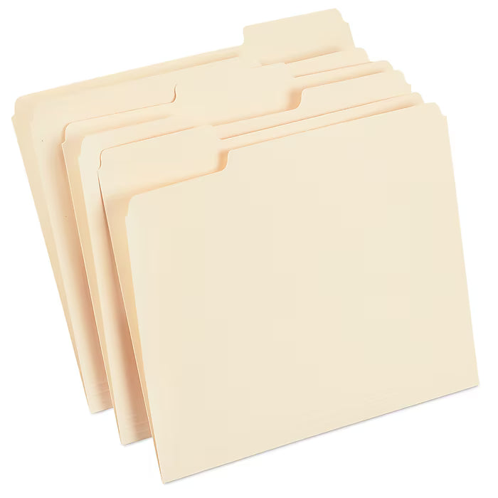 - Three 1/3-cut assorted-position top tabs allow for ample space for labeling to keep your files organized